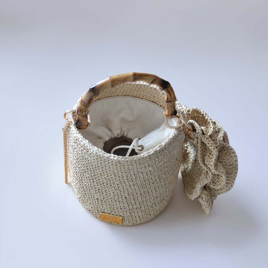 The Seau, bolso cubo rafia crema y negro hecho a mano