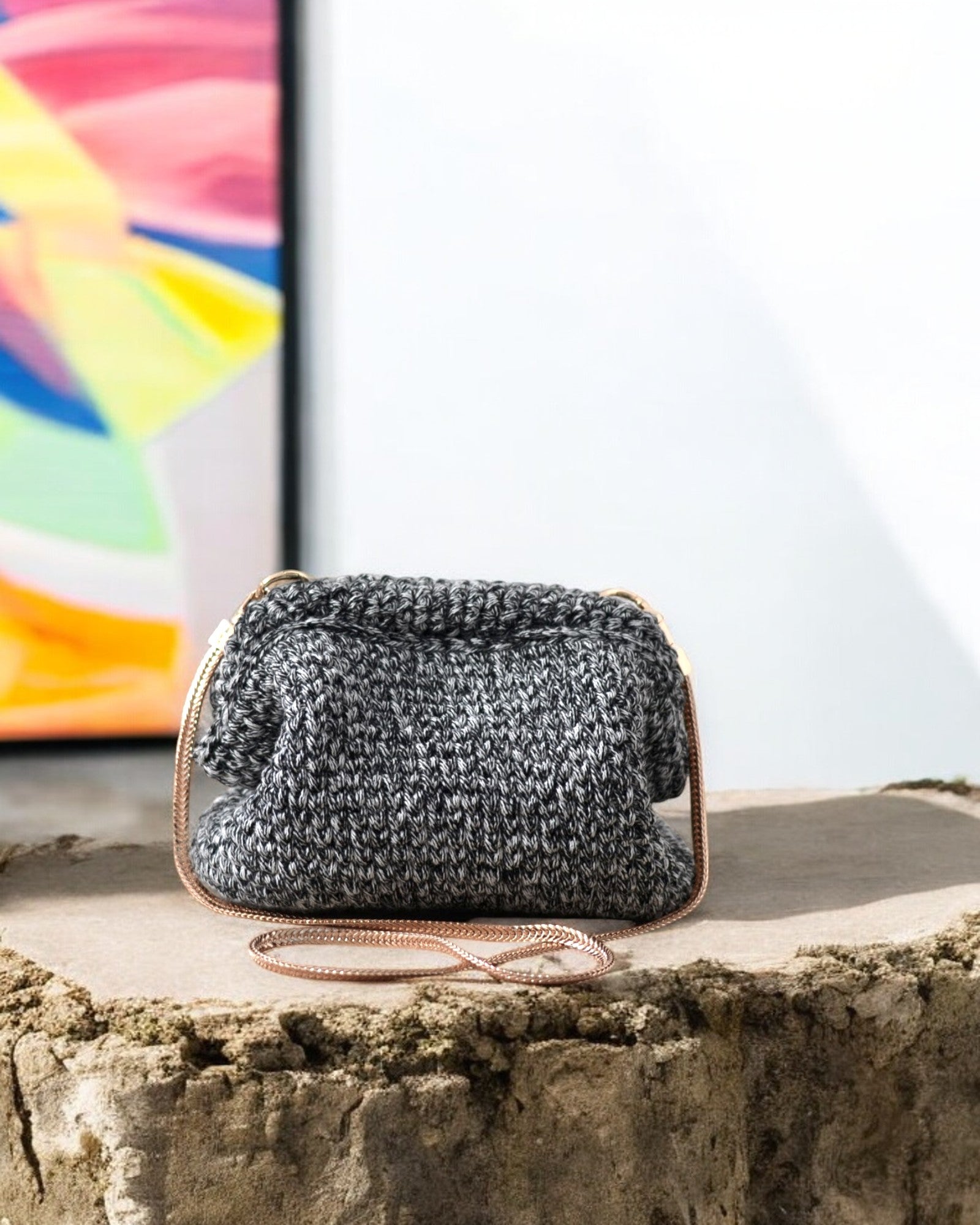 Pochette au crochet en laine mélangée, fabriquée à la main en Espagne
